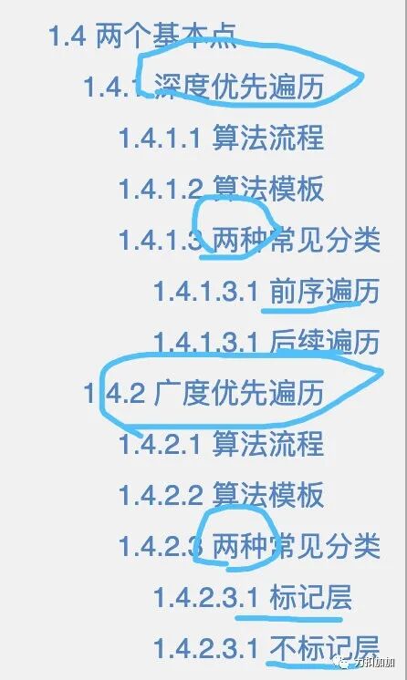 上面提到了树的遍历有两种基本方式,分别是**「深度优先遍历(以下简称 DFS)和广度优先遍历(以下简称 BFS),这就是两个基本点」**。这两种遍历方式下面又会细分几种方式。比如 「DFS 细分为前中后序遍历, BFS 细分为带层的和不带层的」。