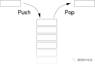 新添加的元素放入栈顶,要删除元素也必须只能从栈顶删除,就如同只有一个端口的筒: