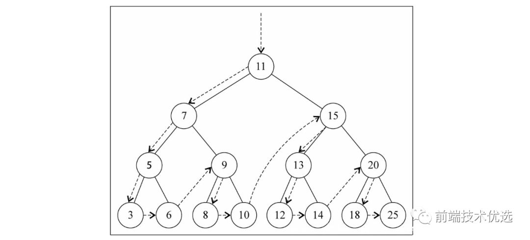 const BinarySearchTree = (function(){ ... const preOrder = function (node, callback) { if (node) { callback(node.key) preOrder(node.left, callback) preOrder(node.right, callback) } } ... class BinarySearchTree { ... preOrderTraverse (callback) { preOrder(this.root, callback) } ... } return BinarySearchTree})()二叉搜索树的中序遍历:(最小 -> 最大)