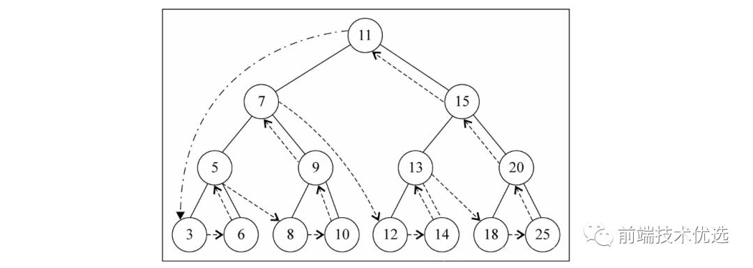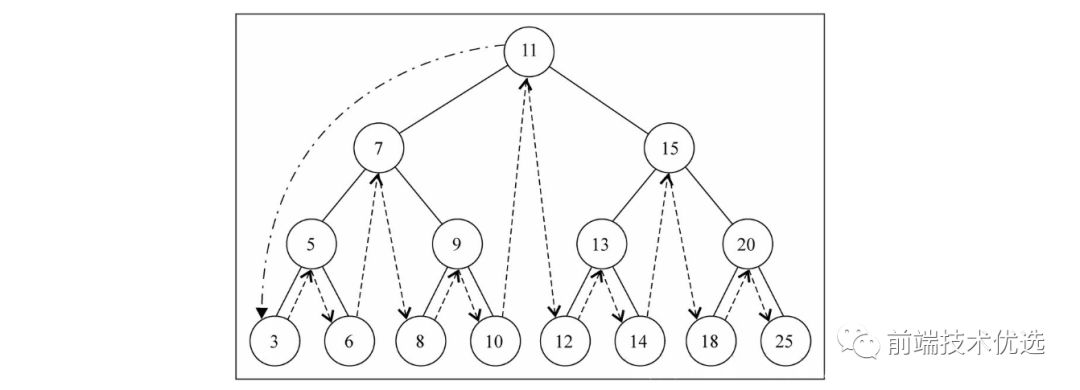 双向链表中节点除了有 next 指向下一个节点,还有prev指向前一个节点。双向链表的优点在于能够从头到尾迭代,也能够从尾到头迭代。如果从头到尾遍历到中间位置的时候,想反向从尾到头进行遍历,也是可以办到的。