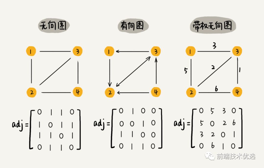 图的一种存储方式是 “邻接矩阵”。邻接矩阵就是一个二维数组,A[i][j] === A[j][i]。