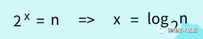 const print = n => { let i = 1 while (i <= n) { i = i * 2 console.log(i) }}代码中循环条件变量 i 每循环一次就乘以 2 ,当 i 大于 2 时循环结束。所以代码循环的次数就是下图中的 x :