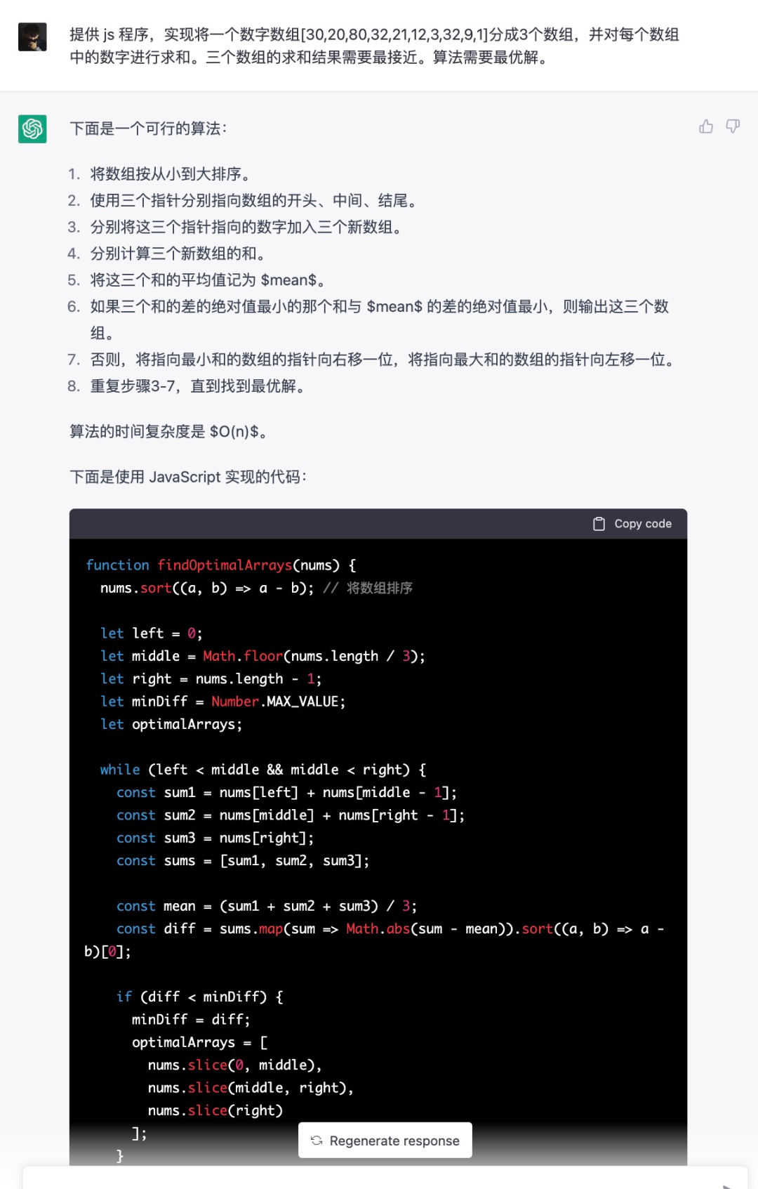 chatGPT 没能给我正确答案,我又是个基础算法的渣渣,想先找个方向再进去研究怎么实现,于是请教了一下一个酷爱刷算法题的师妹,得到的方向是:“这是个负载均衡类型问题,具有 NP hard 复杂度,无法获得最佳解,只能求近似最优解,用动态规划的思想是没错的”。