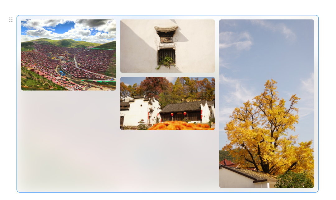 这里依旧不是最佳效果,因为只取了前 n 个,试想我们如果是 3 组,5 个长图,还是有一组全是长图。但长与短的边界实在无法敲定,除非再搞个每张图片高度的均值,大于均值一定阈值的数据先均匀分布到 n 组,但这种操作的数据越多,越影响到底部整体的平齐效果。所以还是只选了和组数相同的前 n 张这么处理。我估摸着大多数用户在文档里的图片是个辅助,不会搞出特别大数量级还夹杂很多长短分明的图。当前能保持一定数量级 (<10)展示上不会有太大问题。