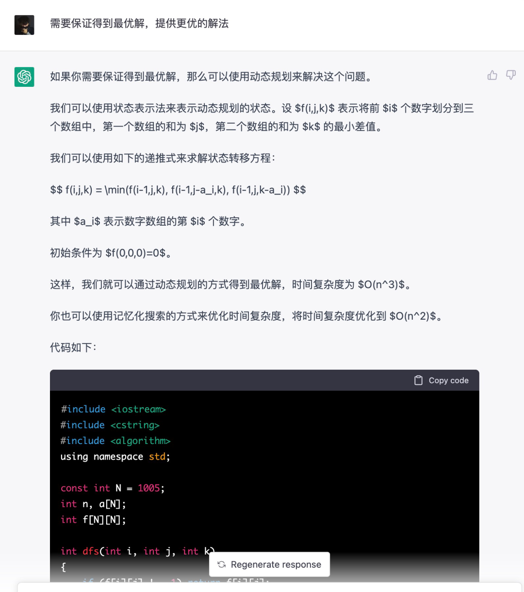 第 1 轮一开始它给了我个贪心算法的不是最优解,得让它进阶
