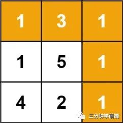 解释:因为路径 1→3→1→1→1 的总和最小。示例 2: