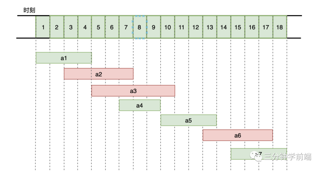 从头开始,我们每次仅仅寻找满足条件的序列(连续子序列长度为 3),剔除之后,依次往后遍历: