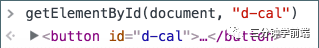 function getElementById(node, id){ if(!node) return null; if(node.id === id) return node; for(var i = 0; i < node.childNodes.length; i++){ var found = getElementById(node.childNodes[i], id); if(found) return found; } return null;}getElementById(document, "d-cal");最后在控制台验证一下,执行结果如下图所示: