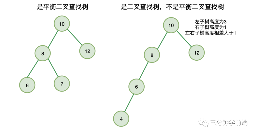 二叉树中,每一个节点的左右子树的高度相差不能大于 1,称为平衡二叉树。