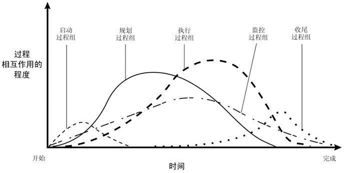 项目生命周期与不同项目过程组的相互作用关系 (出自 PMBok)