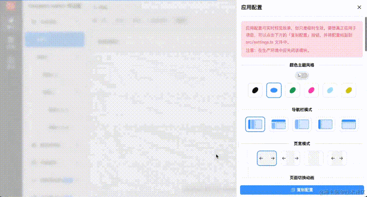 可以看到,虽然抽屉组件里用了很多表单类的组件,但这部分组件都是在应用配置里使用的,而应用配置这个模块,主要是方便在线测试框架提供的各种功能,在实际业务开发中,是完全不需要这个模块的。