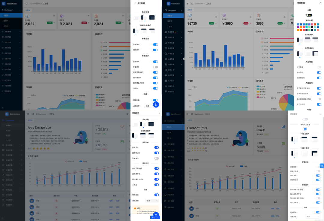 其次就是后台框架提供的功能不统一,这里面有一定的原因是因为 UI 组件库导致的。试想一个场景,如果你要从 Element Plus 版本的后台,迁移到 Ant Design Vue 版本的后台,框架的配置文件是否能原封不动的复制过去?如果导航 (路由) 数据是后端返回的,数据结构能否保持完全一致,后端无需做任何修改?因为不同 UI 组件库对菜单组件的使用方式是完全不同的,比如 Element Plus 是需要手动拼装的,而 Naive UI 则是数据驱动的,只需要传入一个树形结构的数据给组件即可。如果数据结构无法保证一致,就会增加迁移和学习的成本。