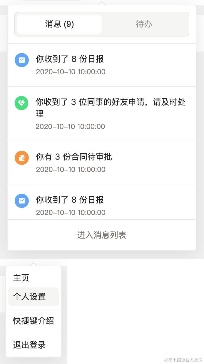 Dropdown 下拉菜单(顶栏右侧的工具栏)
