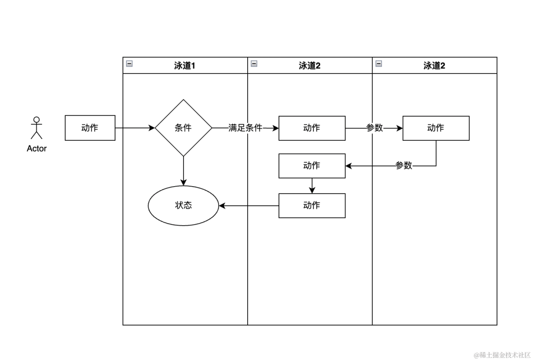 业务语言,而不是技术语言。使用泳道来表示业务环节由什么