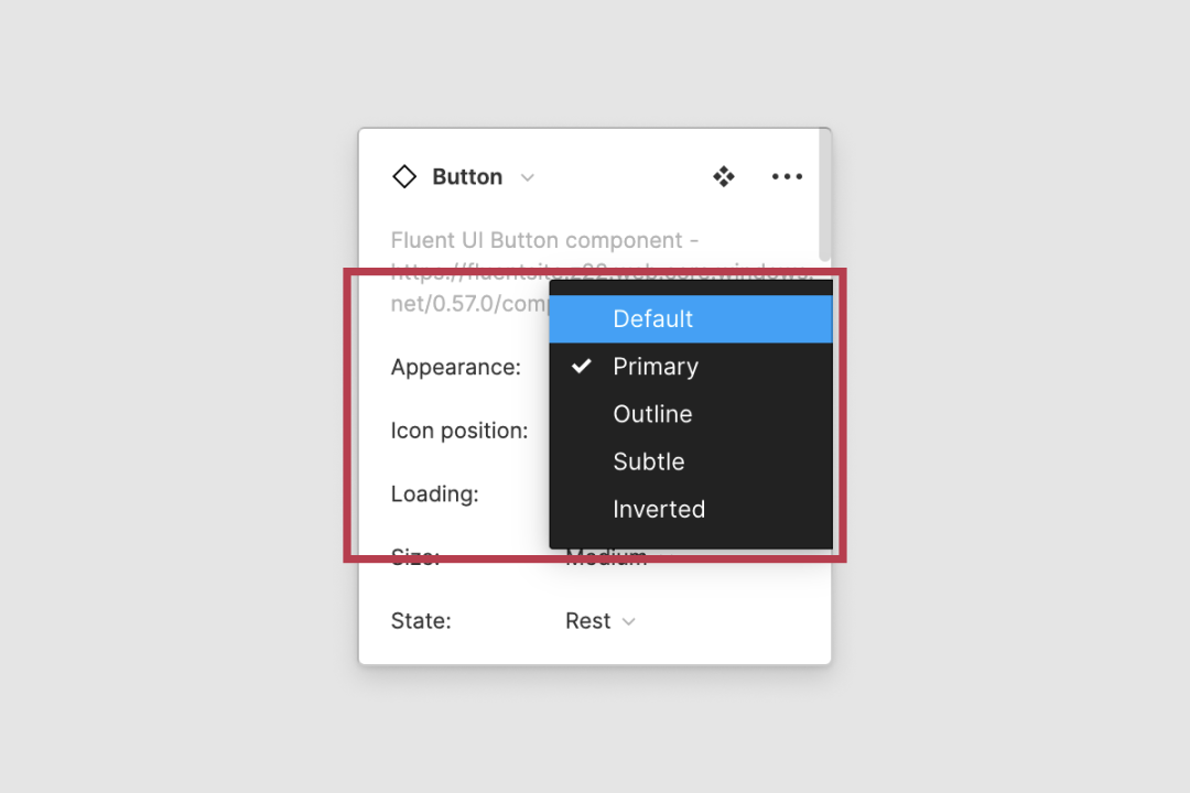 如:代码中的 primary 和 inverted 两个变量,在设计稿中被合并成了 Appearance 一个变量。