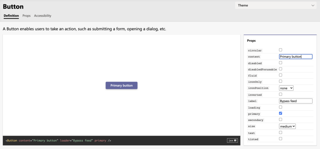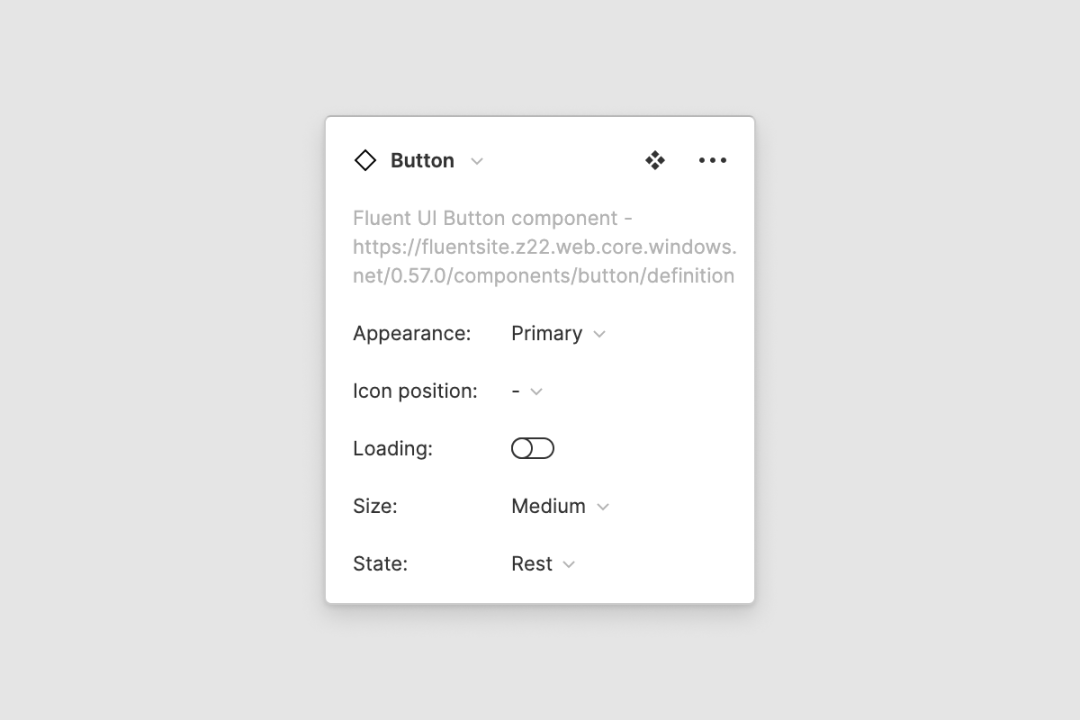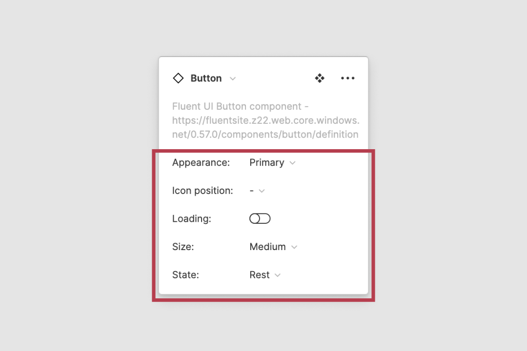 对于设计师来说,一个控件就相当于一个 API。使用组件库的设计师一般都不需要了解和参与这个控件的制作过程。如下图所示的 Button 控件就相当于一个 API: