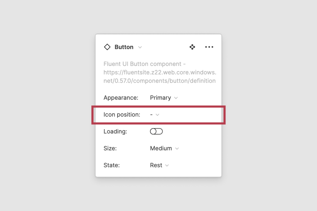 如:代码中的 iconPosition 变量,在设计稿中被命名为 Icon position;代码中 size 变量及其值 small、medium,在设计稿分别被命名为 Size、Small、Medium。
