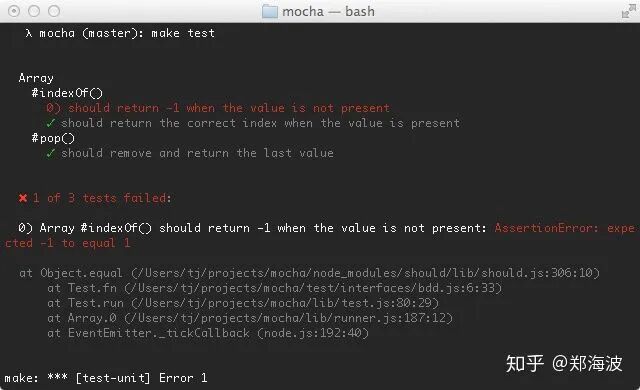 可以发现测试用例变得更加易读易写了,而且当断言失败,也会自动根据链式调用产生的状态,自动拼装出更友好的错误信息,特别是当与 mocha 等测试框架结合时,可以直接生成直观的测试报告: