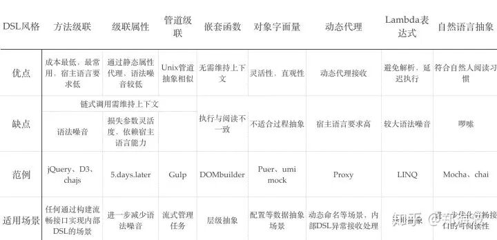 本文并未囊括所有内部 DSL 实现风格 (比如也有些基于 Decorator 装饰器的玩法),且所列风格都不是银弹,都有其适用场景,它们之间存在互补效应。