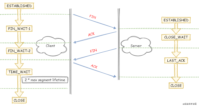 另外可能有人会疑惑为什么要等待两个 MSL 时间,这个其实并没有标准答案,因为这只是像缓存超时时间一样的配置(可以等待两个也可以等待一个,都不影响 TCP 挥手策略的原理),如果一定要硬答,那只是策略决定要等待两个 MSL 时间。