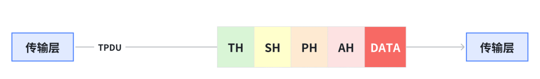 **数据形态:**分段的数据段 (TCP segment),该层会为数据添加 TCP 头部,包括源 / 目的端口、序列号、确认号等。假设消息较小,不需要分割,则此时的数据状态为:TCPHeader(SrcPort:53987, DstPort:443, Seq:12345) + SessionHeader + Encrypted(UTF-8("在吗?"))。
