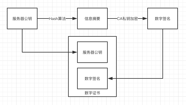 其中,数字签名又是由服务器公钥和证书私钥加密生成的,目的是为了防止服务器公钥被篡改。