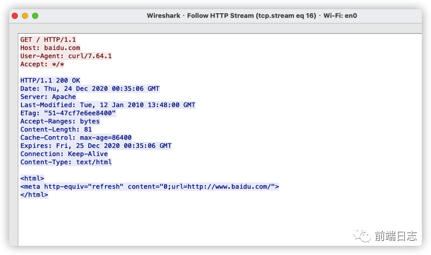 使用 Wireshark 抓包结果如下: