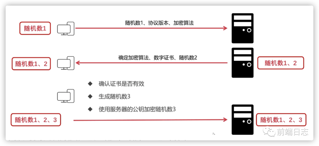 双方使用第 2 步确定的加密算法,把随机数进行加密,即可获得相同的对称加密秘钥。