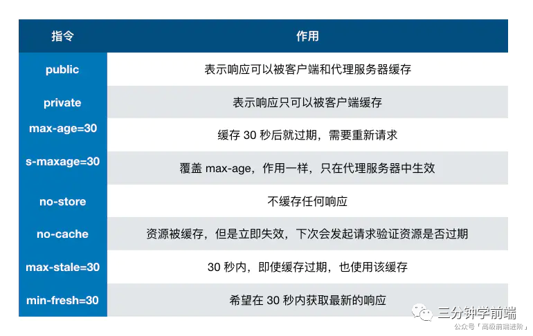 Cache-control: max-age=30该属性值表示资源会在 30 秒后过期,需要再次请求。也就是说在 30 秒内如果再次发起该请求,则会直接使用缓存,强缓存生效。