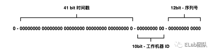 第一位占用 1bit,其值始终是 0,没有实际作用。2. 时间戳 占用 41bit,精确到毫秒,总共可以容纳约 69 年的时间。3. 工作机器 id 占用 10bit,其中高位 5bit 是数据中心 ID,低位 5bit 是工作节点 ID,做多可以容纳 1024 个节点。4. 序列号 占用 12bit,每个节点每毫秒 0 开始不断累加,最多可以累加到 4095,一共可以产生 4096 个 ID。