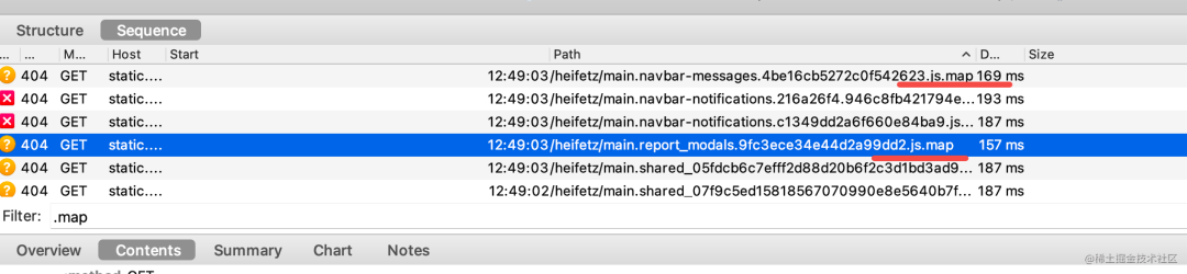 sourcemap 文件的请求也可以在 charles 里看到: