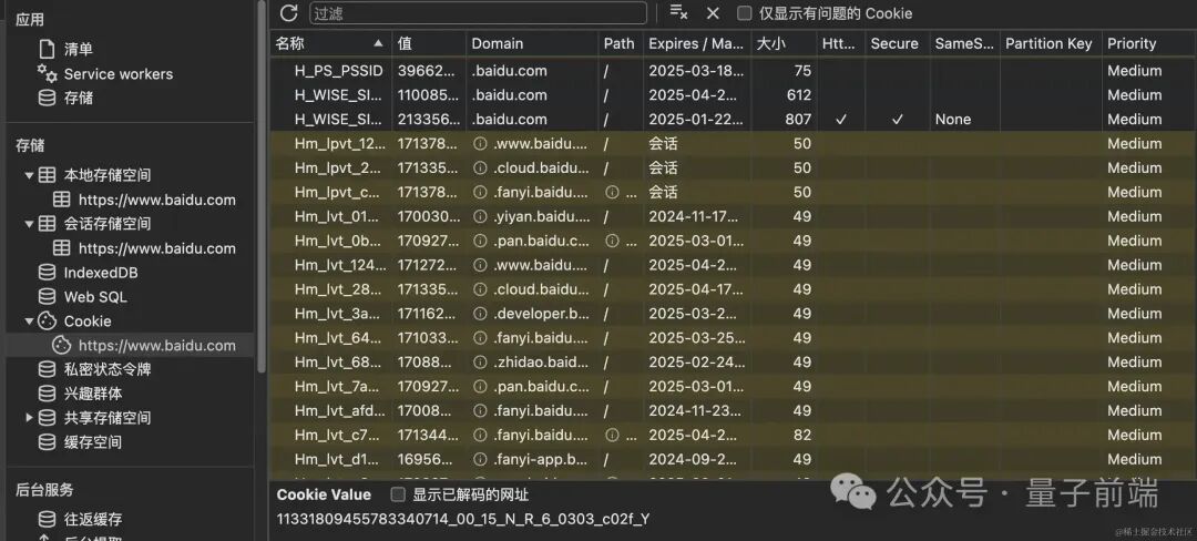 Expires:设置 Cookie 的过期时间。如果不设置,Cookie 会在浏览器关闭时自动失效,称为会话 Cookie(Session Cookie)。Expires 使用的是具体的日期和时间(例如:Sat, 31 Dec 2022 23:59:59 GMT)。