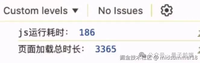 <body> <ul id="container"></ul> <script> let ul = document.getElementById("container"); const total = 100000 let now = Date.now(); for (let i = 0; i < total; i++) { let li = document.createElement("li") li.innerHTML = ~~(Math.random() * total) ul.appendChild(li) } console.log('js运行耗时:', Date.now() - now); setTimeout(() => { console.log('页面加载总时长:', Date.now() - now); }) </script></body>可以看到,导致页面加载缓慢的是页面渲染速度过慢,js 的运行速度还算可以的。以上 demo 中是暴力渲染,接下来带友友们了解两个方法来加快渲染速度,提升用户体验感以及页面渲染效率