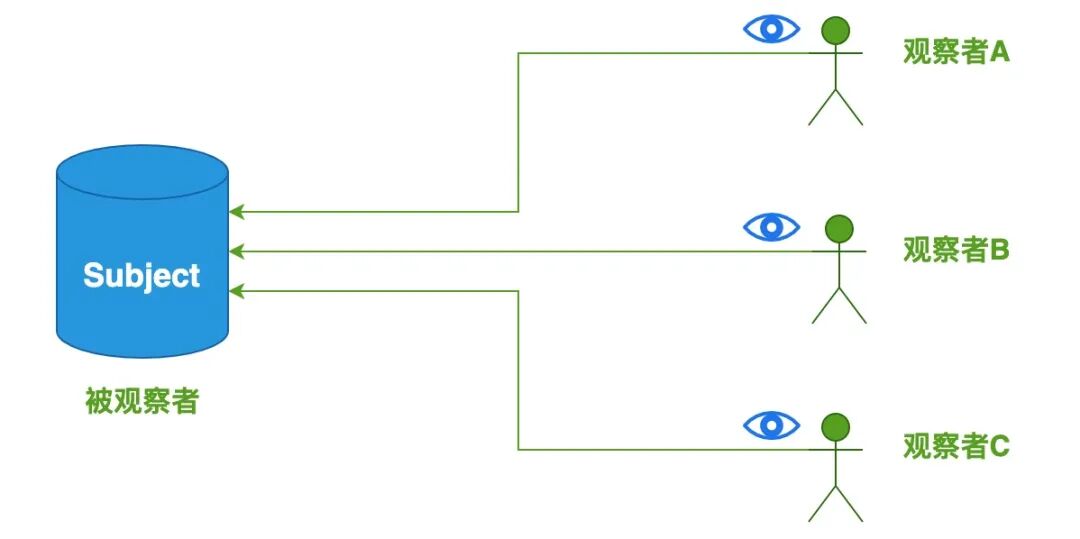 观察者模式,它定义了一种 一对多 的关系,让多个观察者对象同时监听某一个主题对象,这个主题对象的状态发生变化时就会通知所有的观察者对象,使得它们能够自动更新自己。在观察者模式中有两个主要角色:Subject(主题)和 Observer(观察者)。