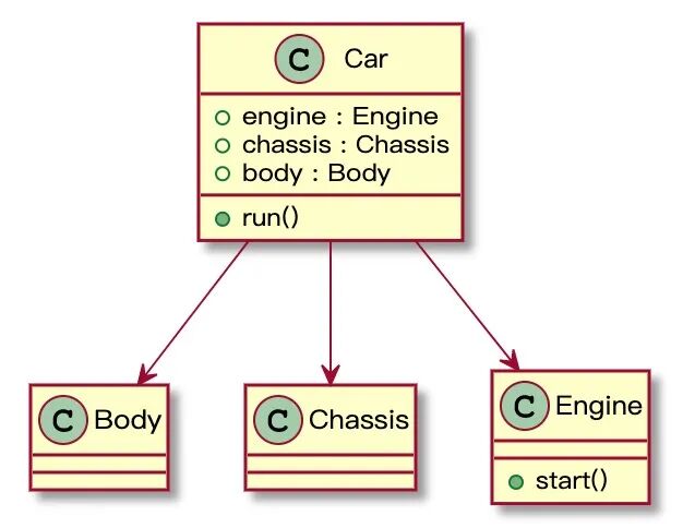 export default class Car { body: Body; engine: Engine; chassis: Chassis; constructor(engine, body, chassis) { this.engine = engine; this.body = body; this.chassis = chassis; } run() { this.engine.start(); }}重构完汽车类,我们来重新造辆新车: