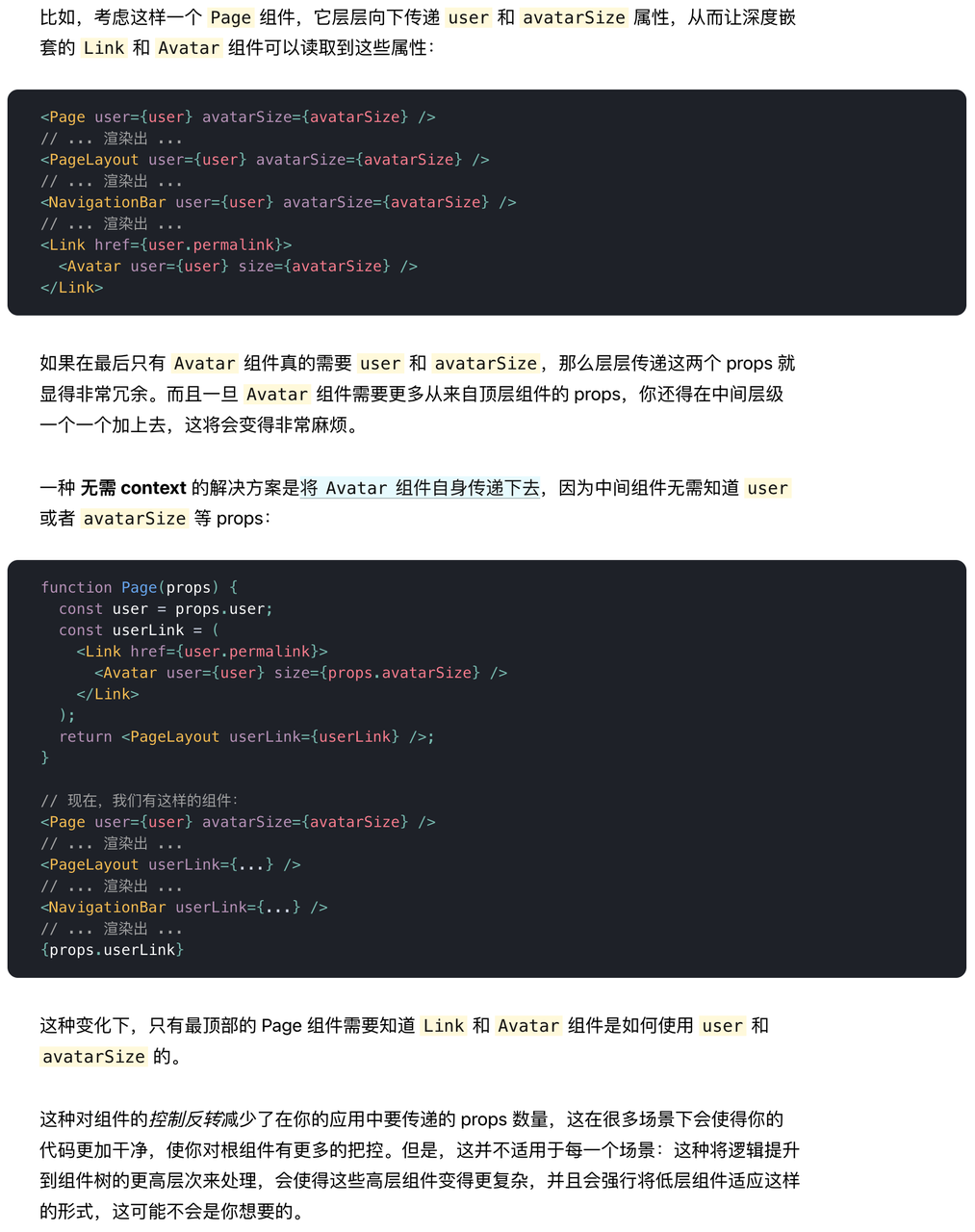 Context – React: _https://zh-hans.reactjs.org/docs/context.html#before-you-use-context_