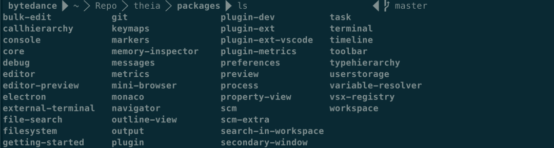 可以通过 Theia 的内置模块 [6],来一窥其是怎么进行模块划分的。