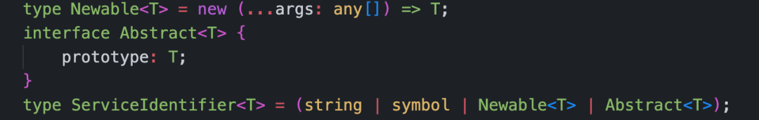 标识符 (Service Identifier) 也可以使用 string 或者其它类型,只要意义清晰即可。其 TS 声明如下: