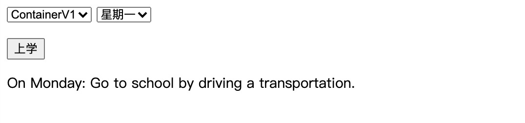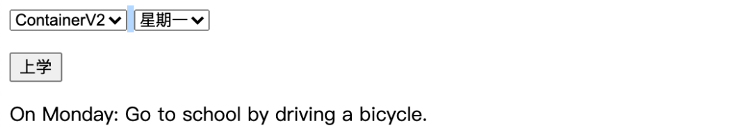 const container = new ContainerV2();container.register({ token: Transportation, useClass: Bicycle});const student = container.resolve(Student);return student.gotoSchool();于是我们在 codesandbox 就能够看到下面的效果,终于可以骑车去上学了。
