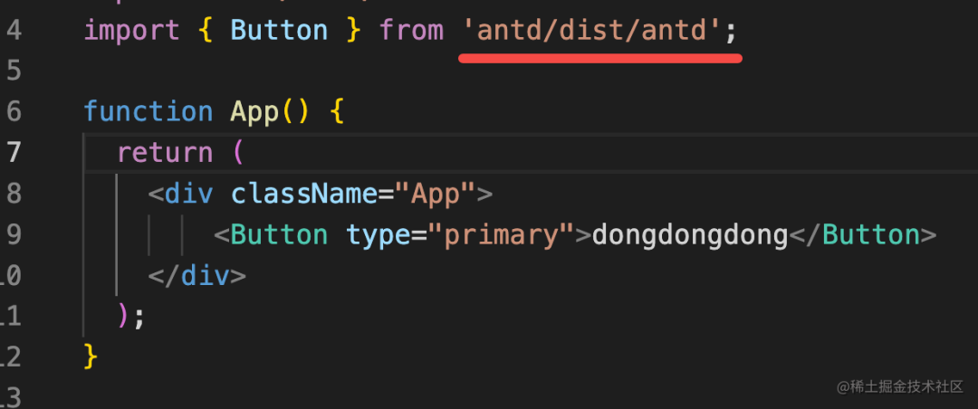 然后我们安装 antd,在入口组件里引入样式和 Button 组件: