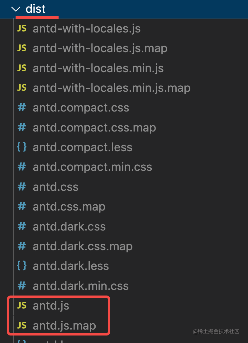 dist 目录下会生成新的 antd.js 和 antd.js.map。