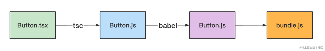 代码经过了 tsc 的编译,然后又经过了 babel 的编译,最后再通过 webpack 打包成 bundle.js。