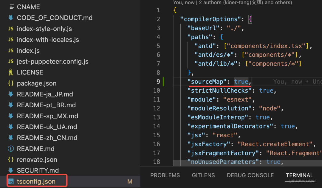 ts 也同样要生成 sourcemap,不过那个是在根目录的 tsconfig.json 里改: