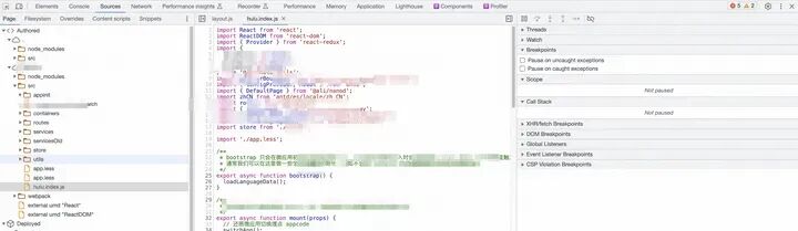 通过这些面板,我们可以直接找到希望调试的源码文件,打断点单步调试,查看上下文信息等。如果你是纯粹的 debugger 选手或 console.log 选手,只好表示 understand & respect。