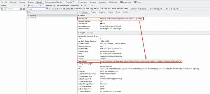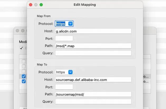 { "proxy": [ [ "https://g.alicdn.com/(.*).map", "https://sourcemap.def.alibaba-inc.com/sourcemap/$1.map", ] ], }很快我们就会发现没有任何卵用。为了验证,笔者自行实现了基于 Manifest V3 的浏览器插件(使用 chrome.declarativeNetRequestAPI)和基于 Manifest V2 的浏览器插件(使用 chrome.webRequestAPI),也同样没有卵用。无论是 Charles 还是 Developer Resources 都会告诉你 SourceMap 的加载是 404,不过如果我们转发 Network 标签页中可见的请求是可以生效的。