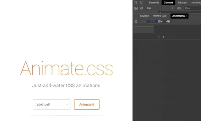 动画检查器支持 CSS 动画、CSS 过渡和网络动画。当前不支持 requestAnimationFrame 动画。