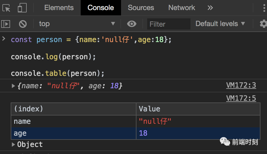 该命令支持以表格的形式输出日志信息。打印复杂信息时尝试使用 console.table 来替代 console.log 会更加清晰。
