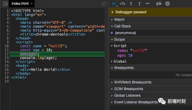 使用 debugger 关键词, 我们可以直接在源码中定义断点, 方便很多。