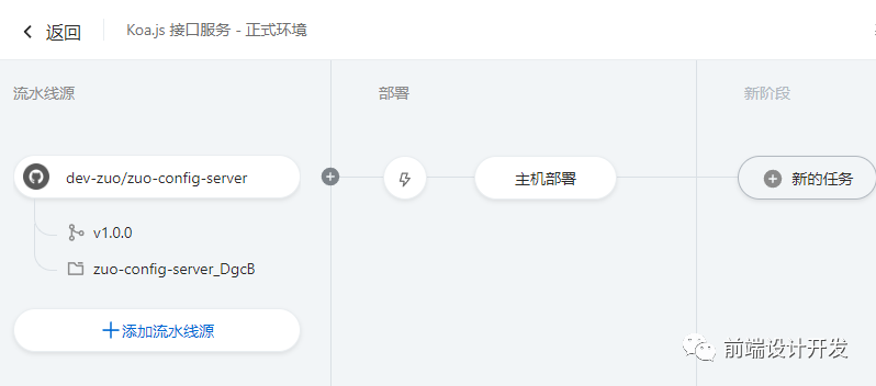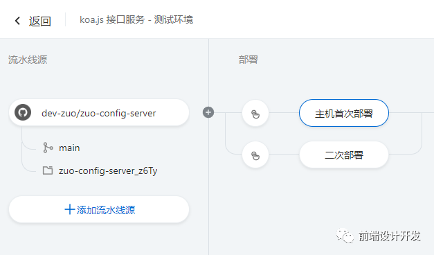 - 设置 git 源 2. 构建(比如前端项目执行 npm run build)、此时可以选择分支,是否执行 npm install3. 部署(使用构建生成的文件部署)