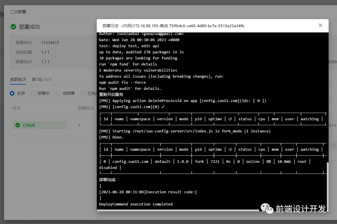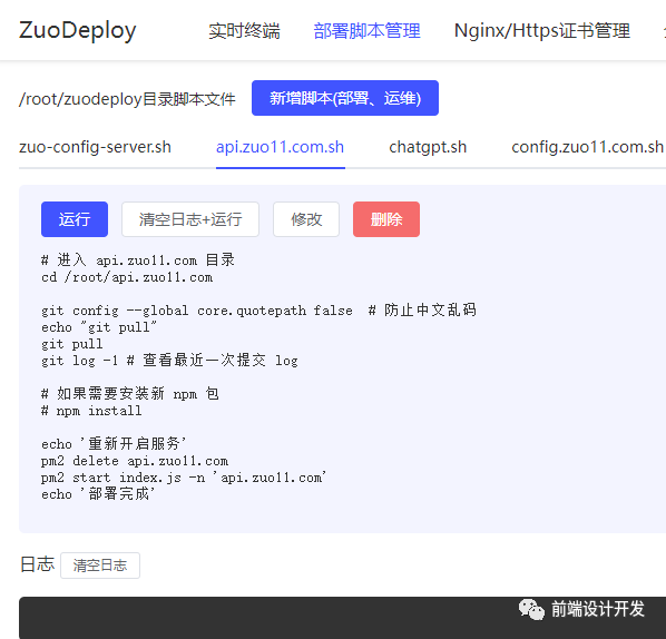 git clone git@github.com:zuoxiaobai/zuo-config-server.git --branch v1.0.0二次部署的脚本和 3.1 部署脚本一致,脚本运行日志如下图